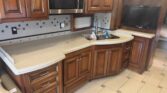 Counter backsplash and kitchen sink
